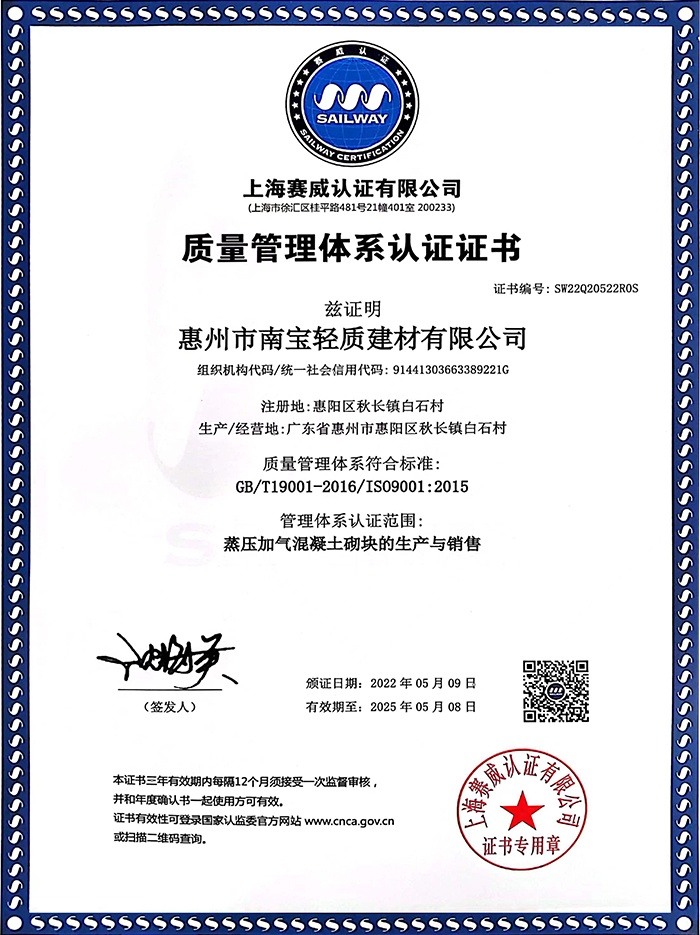 廣東省惠州市南寶輕質(zhì)建材有限公司成立于2007年,公司一直致力于新型環(huán)保的墻體材料的開發(fā)、生產(chǎn)和銷售服務(wù),生產(chǎn)的蒸壓加氣混凝土砌塊遍布惠州、深圳及周邊城市,以高品質(zhì)、高性價(jià)比的產(chǎn)品和優(yōu)良的服務(wù)質(zhì)量榮獲良好的行業(yè)口碑,公司于2020年再接再勵(lì),投入3000余萬資金引進(jìn)行業(yè)領(lǐng)先的6米全自動(dòng)加氣混凝土砌塊生產(chǎn)線,具備年產(chǎn)量40萬方加氣混凝土砌塊的產(chǎn)能,同時(shí)使產(chǎn)品品質(zhì)、性能更加優(yōu)越。